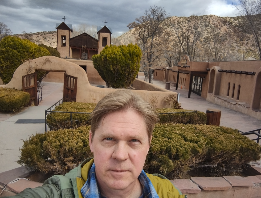The author visiting El Santuario de Chimayó in Chimayó, New Mexico.